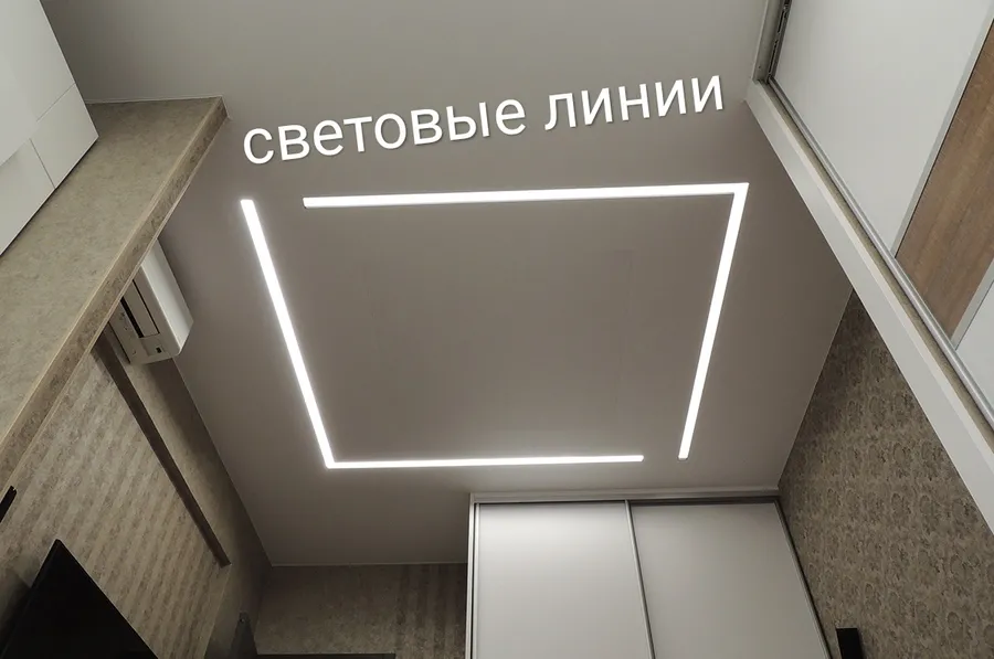 📎парящие натяжные полотки, со световыми и контурными линиями,